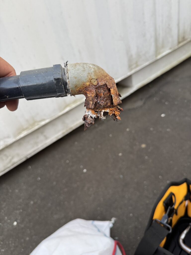 錆で薄くなり水漏れを起こします