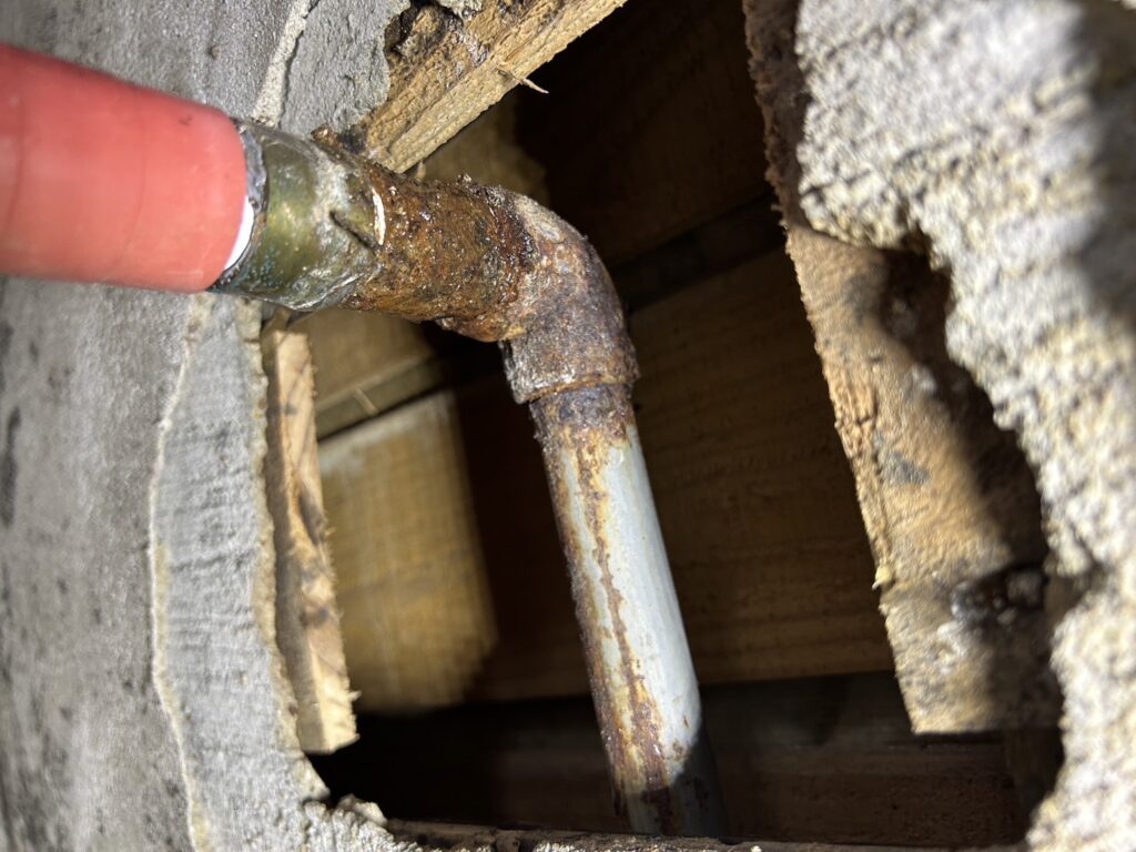 一部は土の中の湿った場所で鉄管が使われおり良くない状態の配管が多いです